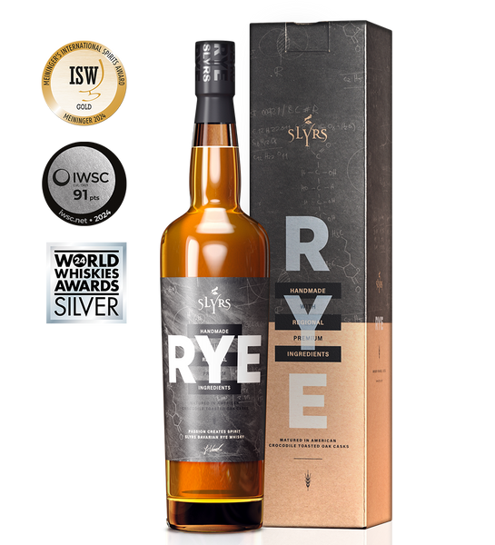 SLYRS Bavarian RYE Whisky este o premieră pentru distileria SLYRS - primul whisky bazat pe secară. Fiecare pachet conține 6 sticle a câte 700 ml, reprezentând rezultatul mai multor ani de dezvoltare, rafinare și trei ani de maturare. Un whisky care a câștigat medalia de argint la World Whisky Awards.