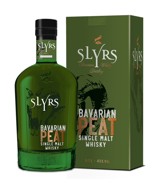 SLYRS Single Malt Whisky Bavarian PEAT extinde gama creațiilor eclectice de whisky cu o expresie intensă și afumată. Fiecare pachet conține 6 sticle a câte 700 ml, cu 43% ABV, reprezentând o interpretare bavareză unică a stilului peated.