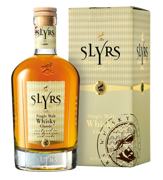 SLYRS Single Malt Whisky Classic este un whisky bavarez excepțional, produs din ingrediente regionale prin metode tradiționale delicate. Fiecare pachet conține 6 sticle a câte 700 ml fiecare, cu un conținut alcoolic de 43% ABV. Rezultatul unei maturări îndelungate în butoaie noi de stejar alb american, acest spirit se savurează cel mai bine când este servit pur.